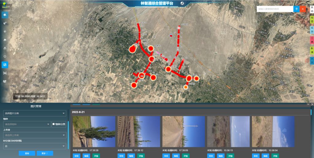 “林智通®”自然资源综合监管平台是以二维或三维的方式在地图中展示影像地图、失量地图和其它林草资源、监测设备等的可视化Web管理平台,是集外业巡护监管、林业有害生物发生及防治监管、生物多样性分布、物联网设备监管等功能为一体的省集中式综合展示及管理平台。能为综合分析、远程决策、应急指挥等提供及时的、有效的、直观的、可视化的数据支持。