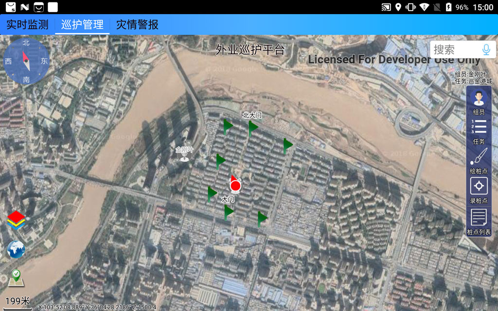 主要功能1.简易的操作界面,为低操作性的外业人员提供基本的外业功能。2.外业人员可以进行分组管理,组长可以为每个组员设计巡护路线并上传至服务器;组员接收该任务后,进行自动巡护并实时上传巡护进度。3.组长可在大地图上实时查看各组员的当前位置和巡护进度(实时位置显示及巡护进度管理)。